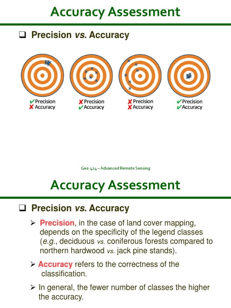 Remote sensing is becoming an important and useful tool in mapping large, remote areas and has many applications in geosciences such as geologic this is an ongoing experimental project. Remote sensing math is designed to be used as a supplement for teaching mathematical topics; The pupose of quantitative accuracy assessment is the identification and measurement of map errors. Productive utilization of geodata is only possible if the quality of the data is known. Accuracy/consistency assessment of estimates of forest cover changes.